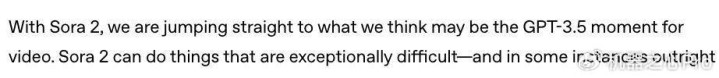 在介绍文章中,OpenAI更是直言Sora2直接进入了视频领域的GPT3.5时刻,也就是当时的ChatGPT时刻。